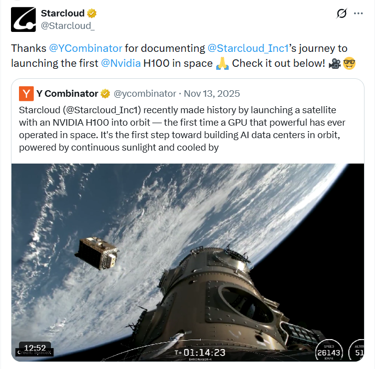 Проект Starcloud, специализирующийся на создании космических дата-центров, был основан в 2024 году. В ноябре 2025 года компания успешно отправила на орбиту первый спутник Starcloud-1, оборудованный графическими процессорами Nvidia H100, что стало первой практической проверкой их концепции космических вычислений.