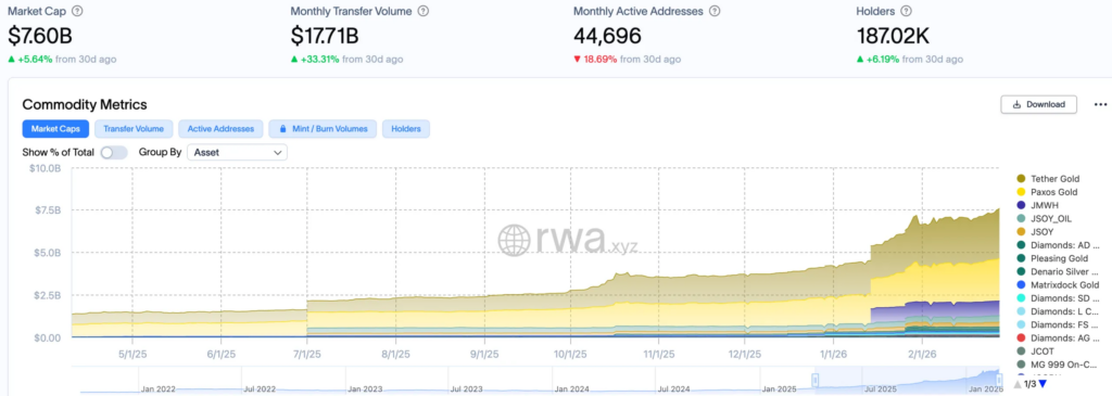 Динамика капитализации различных токенизированных биржевых товаров. Источник: RWA