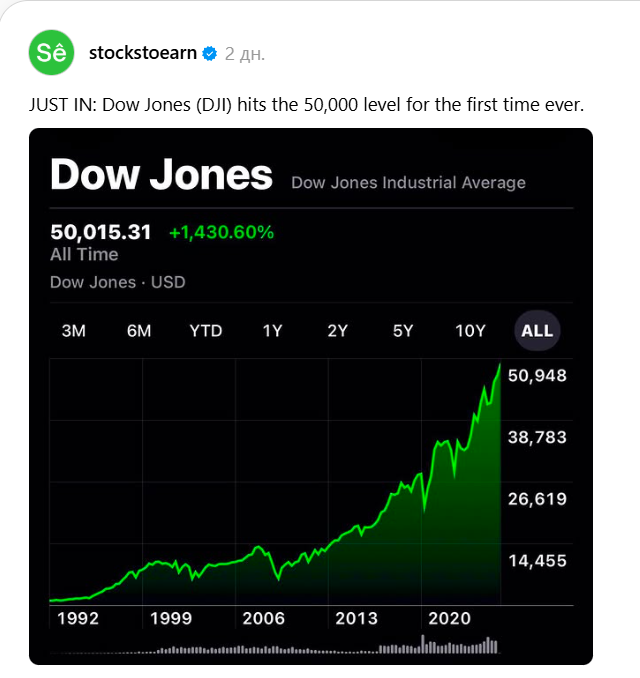 На поверхности всё выглядит как праздник: Dow Jones обновляет исторические рекорды (уже выше 50,000!), индустриальные компании демонстрируют внушительный рост, финансовый сектор на подъёме, а аэрокосмос и энергетика словно вообще не знали недавней коррекции. Казалось бы, рынок восстановился полностью, и инвесторы могут радоваться очередной волне бычьего настроения. Но если заглянуть глубже, картина оказывается более сложной.