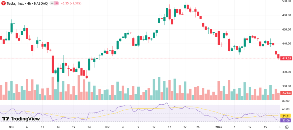 Tesla share price dynamics (November 2025 – January 2025). Source: TradingView