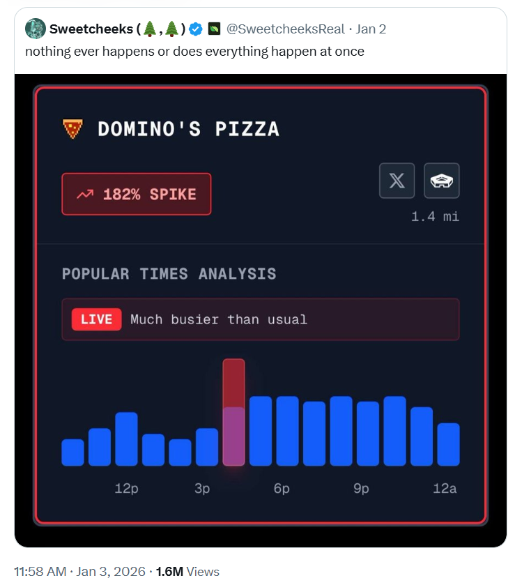 Why does this work at all? Because such signals are almost impossible to fake in advance. Politicians can say one thing, diplomats can stall for time, and markets can hesitate. But when dozens or hundreds of people suddenly stay to work overnight in one of the most secure buildings in the world, it almost always shows up in mundane details. In this sense, pizza becomes an indirect but honest indicator.
