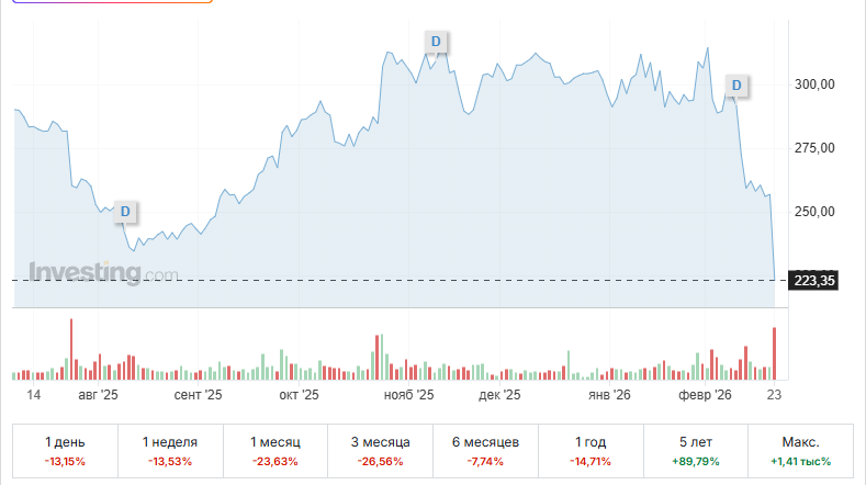 При этом важно отметить, что падение акций произошло не на фоне слабой отчетности или ухудшения операционных показателей. Это реакция на страх — страх того, что технологическая волна AI может перераспределить прибыль внутри отрасли. В подобных ситуациях рынок часто закладывает в цену наихудший сценарий задолго до того, как он станет реальностью.