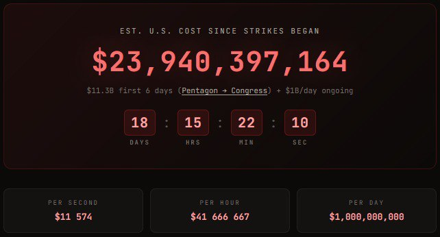 США уже сожгли почти $24 млрд, и каждый новый день обходится примерно в $1 млрд — даже по меркам большой политики это не «операция», а полноценная финансовая воронка.