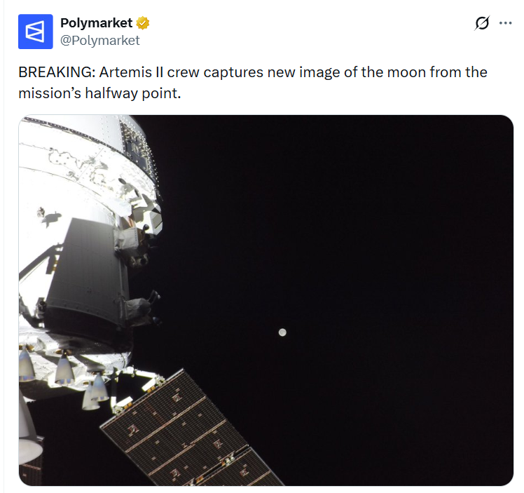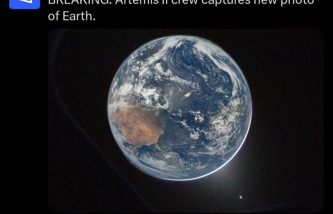 Пока все спорят, где заканчивается космос и начинается графика, в сети разгоняют новый кадр Земли от миссии Artemis II. Фото якобы сделала команда прямо с орбиты, и его уже активно постит Polymarket у себя в X.