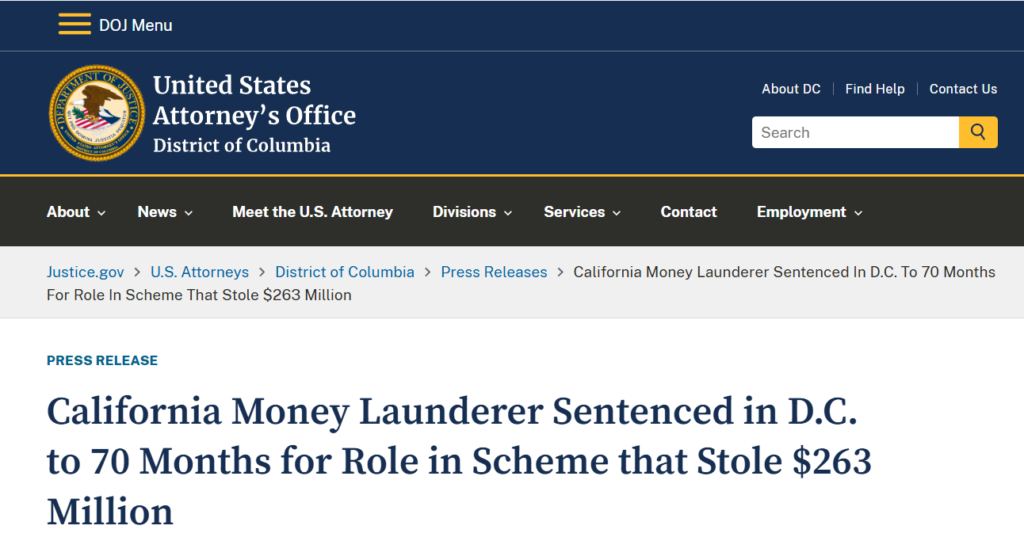 История с криптовалютами давно перестала быть только про технологии и инвестиции. Иногда это вполне классический криминал — только с блокчейном вместо чемоданов с наличкой. Очередное подтверждение этому дал федеральный суд в Вашингтоне, где вынесли приговор одному из участников крупной схемы отмывания криптоактивов.