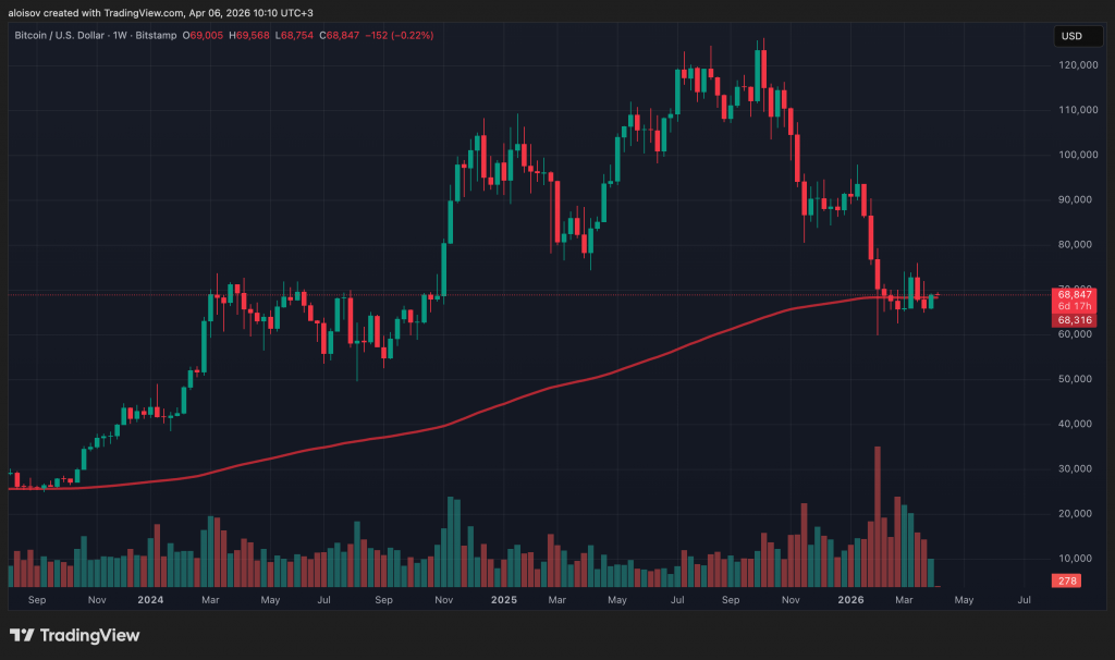 1-недельный график BTC/USD и 200EMA. Источник: Bitstamp