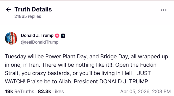 Противоречивые сигналы поддержали рынок. Ключевым триггером стала не конкретная новость, а сочетание сразу двух противоположных сигналов. Сначала последовала жёсткая риторика. В социальной сети Truth Social Трамп заявил, что Иран столкнётся с крайне серьёзными последствиями, если не откроет Ормузский пролив — один из важнейших маршрутов мировой торговли нефтью.