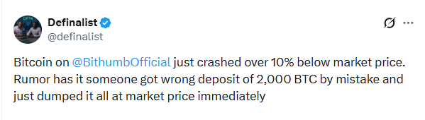 На крипторынке случился тот редкий момент, когда слово «ошибка сотрудника» внезапно превращается в финансовую катастрофу масштаба государства. Южнокорейская биржа Bithumb, по сообщениям в X, оказалась в центре абсурдного инцидента: один из сотрудников якобы случайно отправил пользователям по 2000 BTC вместо 2000 вон.