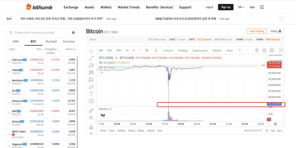 Практически сразу после «раздачи» началась паника — но уже не у пользователей, а у самой биржи. Счастливчики, внезапно превратившиеся в мультимиллионеров, начали тут же продавать полученные биткоины по рынку, буквально проламывая ордера в стакане. В результате на Bithumb цена BTC кратковременно торговалась примерно на 10% ниже среднерыночной.