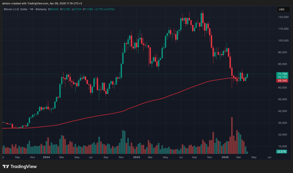1-недельный график BTC/USD и 200EMA. Источник: Bitstamp