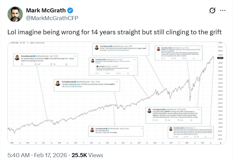 Стоит отметить, что подобные заявления Кийосаaki делает не впервые. Ранее он говорил, что готов покупать биткоин даже в случае падения до 6000 долларов. А в начале февраля 2026 года он снова назвал обвал рынков «распродажей» и заявил о намерении скупать биткоин, золото и серебро, пока другие в панике избавляются от активов. Его позиция предельно ясна: кризис неизбежен, вопрос только в том, окажешься ли ты среди тех, кто подготовился, или среди тех, кто будет застигнут врасплох.