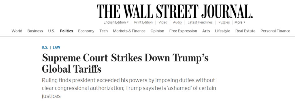 В Верховный суд США разгорелся процесс, который может войти в учебники по конституционному праву и экономике одновременно. Суд большинством голосов (шесть против трех) постановил, что Дональд Трамп превысил свои полномочия, вводя масштабные пошлины на импорт товаров в США.