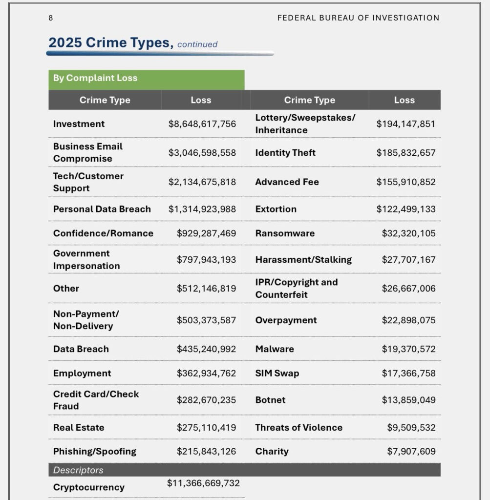 Цифры за 2025 год выглядят как холодный душ для всей индустрии. По данным FBI Internet Crime Complaint Center, американцы потеряли $11,37 млрд в схемах, где криптовалюта использовалась как инструмент перевода средств. Годом ранее эта сумма составляла $9,3 млрд — рост на 22% всего за один год. И это не волатильность рынка, не неудачные инвестиции и не «ошибся с токеном». Это прямые потери из-за мошенничества.