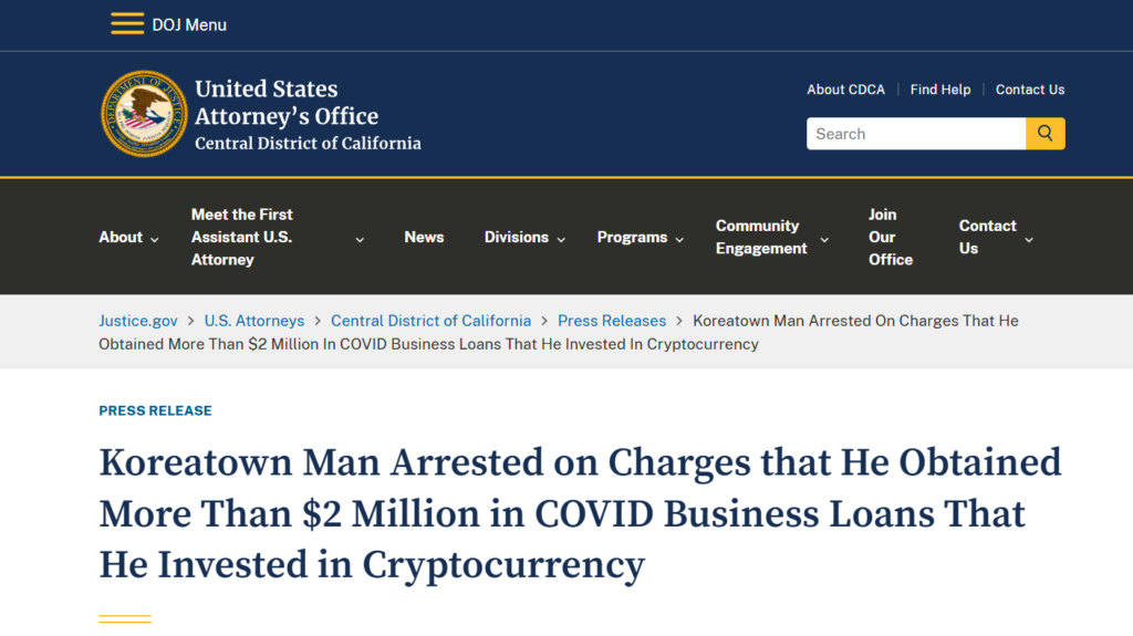 Министерство юстиции США сообщило о громком задержании 34-летнего Брюса Чоя, который подозревается в мошенническом получении более $2 млн в рамках федеральных программ поддержки бизнеса, созданных во время пандемии COVID-19. По информации ведомства, часть этих средств обвиняемый направил на покупку криптовалюты, что добавляет новой интриги к уже сложной истории.