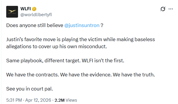 Відповідь з боку WLFI була швидкою і в характерно жорсткій манері. Представники проєкту фактично відкинули всі звинувачення, заявивши, що Сан «грає жертву» і висуває безпідставні претензії, щоб відвернути увагу від власних дій. Більше того, команда підкреслила, що має контракти, докази і «правду», і завершила заяву прямим натяком на судовий розгляд.