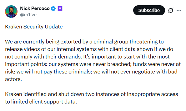 Kraken прямо заявила, що розглядає дії дослідника як вимагання. У відповідь компанія оперативно ініціювала внутрішнє розслідування, усунула вразливість і повідомила правоохоронні органи.
