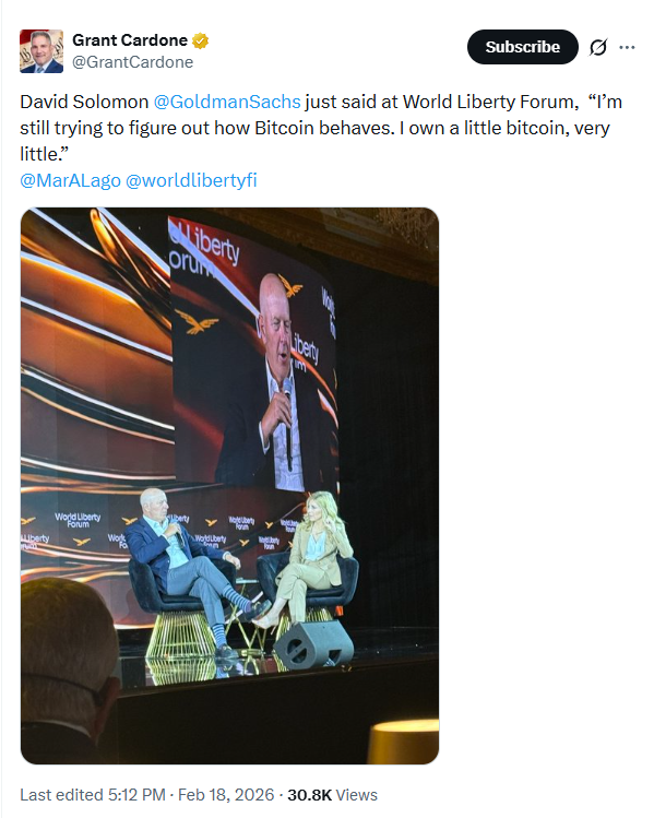 Особенно показательным стало выступление Соломона. Многолетний скептик в отношении криптовалют, он на сцене публично признал, что теперь владеет «небольшим количеством биткоина, совсем небольшим». В нормальной ситуации эта фраза могла бы прозвучать как шутка или личное признание. Но в контексте Goldman Sachs это выглядит как корпоративный сигнал: если даже один из самых осторожных игроков Уолл-стрит допускает биткоин в личный портфель, значит рынок действительно перешел в новую фазу.