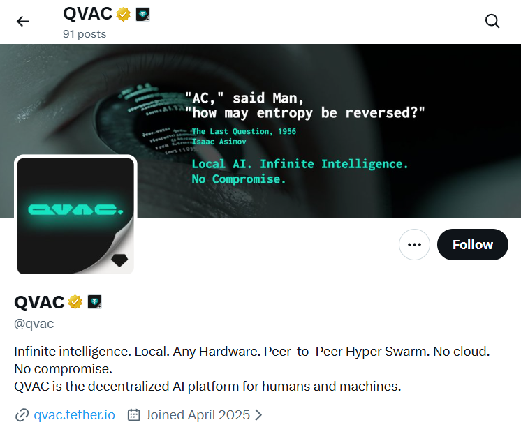 QVAC (QuantumVerse Automatic Computer) представляет собой экспериментальную платформу, которую Tether разрабатывает уже более года. Главная идея проекта заключается в том, чтобы перенести вычисления искусственного интеллекта непосредственно на пользовательские устройства. В отличие от традиционных AI-сервисов, которые работают через облачные серверы, QVAC позволяет запускать модели локально, без использования удаленной инфраструктуры и без API-ключей.