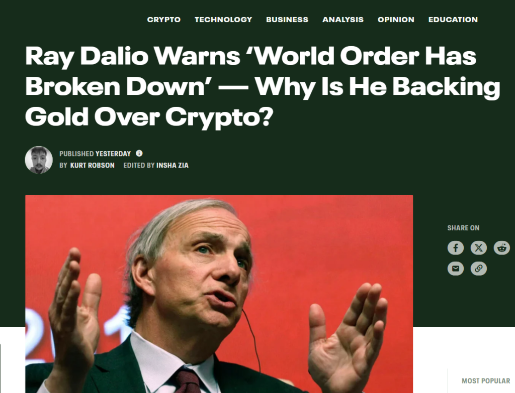 Примечательно, что в своих последних комментариях Далио практически не упоминает биткоин или другие криптовалюты как защитный инструмент. На фоне того, что многие сторонники цифровых активов считают их альтернативой золоту, его молчание выглядит показательно. Для него в условиях геополитического хаоса криптовалюты пока не стали таким же очевидным убежищем, как металл, проверенный столетиями.